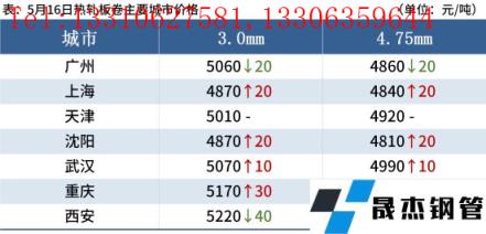 熱軋板卷:5月16日,全國24個主要城市4.75mm熱軋板卷均價5013元/噸,較上個交易日下跌8元/噸。受期貨盤面的影響午后價格小幅上揚,但成交普遍一般,看弱情緒仍在部分蔓延,商家多數仍謹慎操作,預計17日全國熱軋板卷價格將呈現小幅上漲的態(tài)勢。