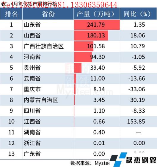 免責(zé)聲明:本網(wǎng)站(山東聊城晟杰無(wú)縫鋼管廠www.vsocial.cn)刊載的“統(tǒng)計(jì)局:前4月全國(guó)分省市鋁材、氧化鋁產(chǎn)量出爐”等均源于網(wǎng)絡(luò),版權(quán)歸原作者所有,且僅代表原作者觀點(diǎn),本文所載信息僅供參考。轉(zhuǎn)載僅為學(xué)習(xí)與交流之目的,如無(wú)意中侵犯您的合法權(quán)益,請(qǐng)及時(shí)聯(lián)系刪除。本網(wǎng)站刊登此篇文章并不意味著本站贊同其觀點(diǎn)或證實(shí)其內(nèi)容的真實(shí)性,我們不對(duì)其科學(xué)性、嚴(yán)肅性等作任何形式的保證。如果侵犯了您的版權(quán),請(qǐng)盡快聯(lián)系我們予以撤銷,謝謝合作!