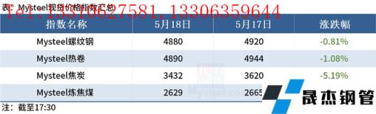 ◎ 數據顯示,截止5月17日,山東10家無縫厚壁鋼管廠家廢鋼總消耗量在2.06萬噸,較上月同期下降0.47萬噸,環比下降18.58%,較去年同期下降2.88萬噸,同比下降58.3%。詳情>>