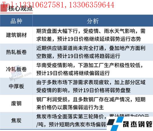 建筑厚壁無(wú)縫鋼管:5月18日,全國(guó)31個(gè)主要城市20mm三級(jí)抗震螺紋鋼均價(jià)4874元/噸,較上個(gè)交易日跌40元/噸。早盤(pán)期螺弱勢(shì)不改,國(guó)內(nèi)建筑厚壁無(wú)縫鋼管價(jià)格整體繼續(xù)下跌。短期來(lái)看,期貨盤(pán)面大幅下行,鋼坯價(jià)格再次回落,市場(chǎng)情緒整體偏弱,加之近期受疫情、雨水天氣影響需求較差,預(yù)計(jì)19日國(guó)內(nèi)建筑厚壁無(wú)縫鋼管價(jià)格繼續(xù)延續(xù)弱勢(shì)運(yùn)行態(tài)勢(shì)。