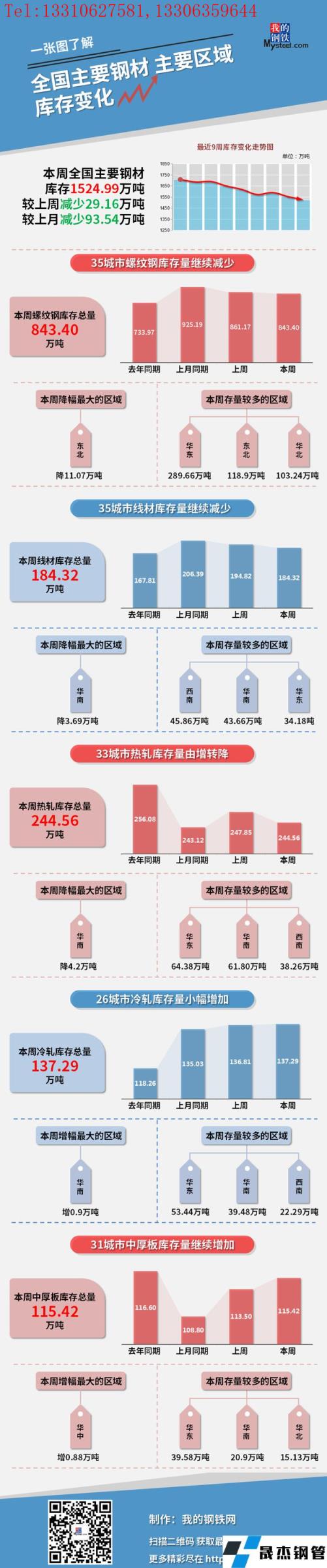 本周,全國主要厚壁無縫鋼管社會(huì)庫存1524.99萬噸,較上周減少29.16萬噸,較上月減少93.54萬噸;螺紋鋼庫存總量843.4萬噸。