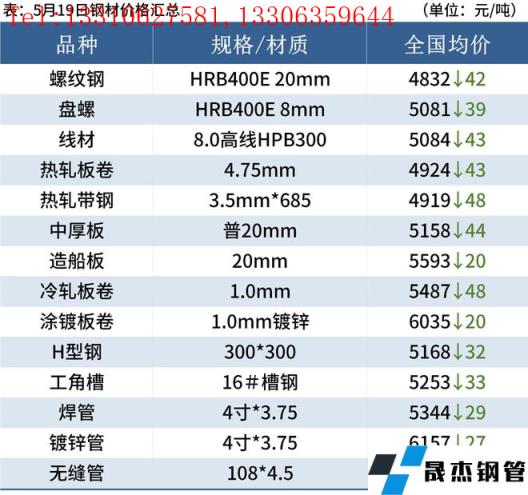 建筑厚壁無縫鋼管:5月19日,全國31個主要城市20mm三級抗震螺紋鋼均價4832元/噸,較上個交易日下跌42元/噸。本周由于無縫厚壁鋼管廠家虧損減產,螺紋鋼產量小幅下降,廠庫繼續上升,社庫繼續下降,同時表觀消費小幅下滑。短期來看,目前市場基本面依然偏弱,但由于價格持續下跌已經導致部分區域無縫厚壁鋼管廠家出現減產、停產情況,供給仍然維持低位。隨著疫情逐漸緩解,厚壁無縫鋼管消費端有望逐漸恢復,鋼價整體下行空間有限。因此預計20日國內建筑厚壁無縫鋼管價格或將窄幅震蕩為主。