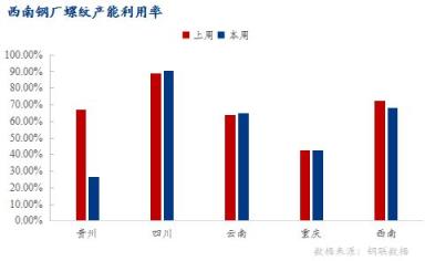 四川區域:部分不飽和生產無縫厚壁鋼管廠家有所恢復,加之產能置換無縫厚壁鋼管廠家螺紋陸續試軋生產,產量整體小幅增加,螺紋鋼產能利用率90.57%,環比上升1.91%;開工率90.48%,環比持平;周產量34.2萬噸,環比增加0.72萬噸。