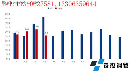 從價差的角度來看,受烏俄沖突導致的全球厚壁無縫鋼管供需錯配影響,海外市場熱卷價格在4月份觸及高點,全球市場除中國外熱卷平均價格已經超過1000美元/噸,海內外價差達到1700元/噸。在海外市場急需補庫以及大額價差的情況下,3-4月份大批量詢單開始蜂涌至中國各大無縫厚壁鋼管廠家及國貿商,大量4-6月船期出口訂單被簽訂,這從3-4月熱卷出口量可以得到印證。近期海外市場價格開始有所回落,海外市場補庫也基本完成,因此我國熱卷出口或將量或將在6月份觸及年內最高點,后逐漸回落。
