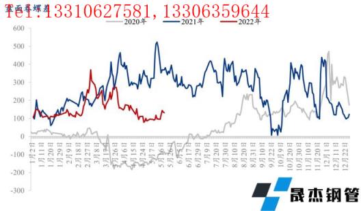 我們知道,2210合約螺紋鋼由之前的過磅交割改為理計(jì)交割,而10合約熱卷交割仍為過磅。這樣當(dāng)前盤面卷螺差折算成螺紋過磅的話,實(shí)際已經(jīng)是負(fù)值。為何盤面卷螺差會(huì)持續(xù)低位。最主要的原因是疫情對(duì)板材需求的影響大于建筑厚壁無縫鋼管,家電、汽車等制造業(yè)和物流修復(fù)都需要一個(gè)相對(duì)長(zhǎng)的時(shí)間,而對(duì)比建筑業(yè)產(chǎn)銷,從上游無縫厚壁鋼管廠家到下游工地可以最快的垂直到達(dá),快速實(shí)現(xiàn)。在經(jīng)濟(jì)下行周期,制造業(yè)表現(xiàn)低迷,為穩(wěn)增長(zhǎng)建筑業(yè)表現(xiàn)會(huì)相對(duì)好些,此時(shí)螺紋相對(duì)熱卷稍強(qiáng),盤面卷螺差持續(xù)縮小。