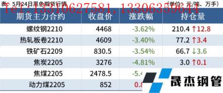 焦炭:5月24日,焦炭市場穩中偏弱運行。焦企大多開工穩定,市場情緒逐漸回暖,貿易商逐步接貨,焦炭庫存低位運行,焦企已無多余利潤且部分陷入虧損,抵觸焦炭降價情緒增加。無縫厚壁鋼管廠家方面,無縫厚壁鋼管廠家開工負荷高穩,剛需支撐較強,考慮成材出貨不暢以及資金壓力,仍控制原料庫存,按需采購為主,市場仍有提降四輪預期。短期內焦炭市場穩中偏弱運行。