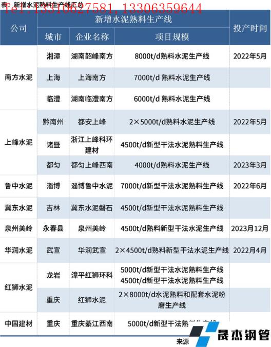免責聲明:本網站(山東聊城晟杰無縫鋼管廠www.vsocial.cn)刊載的“:5月新增11條熟料水泥生產線,紅獅產能最大”等均源于網絡,版權歸原作者所有,且僅代表原作者觀點,本文所載信息僅供參考。轉載僅為學習與交流之目的,如無意中侵犯您的合法權益,請及時聯系刪除。本網站刊登此篇文章并不意味著本站贊同其觀點或證實其內容的真實性,我們不對其科學性、嚴肅性等作任何形式的保證。如果侵犯了您的版權,請盡快聯系我們予以撤銷,謝謝合作!
