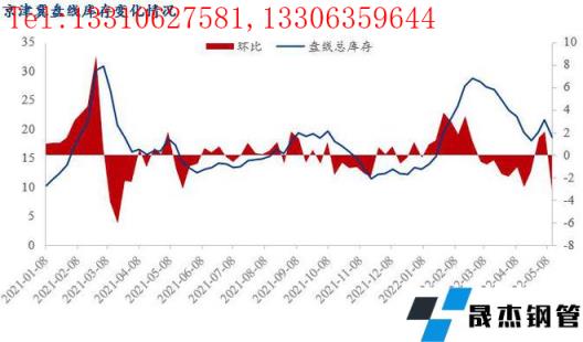 解析:本周京津冀主要建筑厚壁無縫鋼管市場螺紋庫存增加8.65萬噸,盤線庫存增加2.74萬噸,其中北京市場螺紋庫存增加3.39萬噸,盤線庫存增加1.38萬噸。本周京津冀無縫厚壁鋼管廠家產量37.51萬噸,周環比增加7.2%,主要是承鋼、敬業的鐵水不足,本周鐵水略向板材轉移,螺紋鋼產量略有減少。不過東北的凌鋼、西林、新撫以及京津冀區域的敬業無縫厚壁鋼管廠家對北京、天津市場發貨情況尚可,加之需求端受疫情沖擊,有所下滑,因此在供應尚可、需求減少的情況下,市場庫存明顯增加。從品種上看,本周線盤的庫存占比略有上升,為16.78%。各城市來看,目前邯鄲、承德市場盤線庫存偏高,在28%以上;其他市場盤線庫存占比基本位于合理區間,不過周邊市場盤螺價格相對低位,周邊無縫厚壁鋼管廠家向京津冀發貨的意愿較強,盤螺與螺紋鋼價差或有所擴大,特別是不同無縫厚壁鋼管廠家間的盤螺價差或拉大