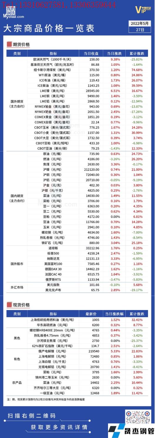 免責(zé)聲明:本網(wǎng)站(山東聊城晟杰無(wú)縫鋼管廠www.vsocial.cn)刊載的“俄烏局勢(shì)丨大宗商品價(jià)格一覽表(5月27日)”等均源于網(wǎng)絡(luò),版權(quán)歸原作者所有,且僅代表原作者觀點(diǎn),本文所載信息僅供參考。轉(zhuǎn)載僅為學(xué)習(xí)與交流之目的,如無(wú)意中侵犯您的合法權(quán)益,請(qǐng)及時(shí)聯(lián)系刪除。本網(wǎng)站刊登此篇文章并不意味著本站贊同其觀點(diǎn)或證實(shí)其內(nèi)容的真實(shí)性,我們不對(duì)其科學(xué)性、嚴(yán)肅性等作任何形式的保證。如果侵犯了您的版權(quán),請(qǐng)盡快聯(lián)系我們予以撤銷,謝謝合作!