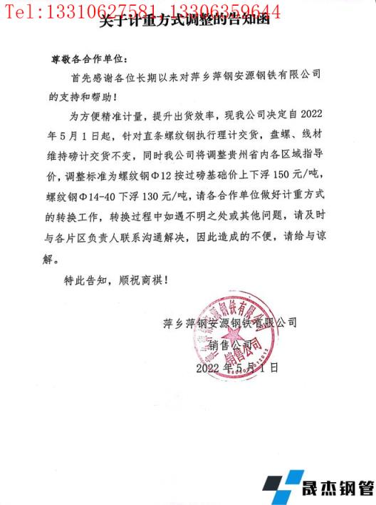 免責聲明:本網(wǎng)站(山東聊城晟杰無縫鋼管廠www.vsocial.cn)刊載的“萍鄉(xiāng)萍鋼安源鋼鐵有限公司關于對貴州區(qū)域計重方式調(diào)整的告知函”等均源于網(wǎng)絡,版權歸原作者所有,且僅代表原作者觀點,本文所載信息僅供參考。轉(zhuǎn)載僅為學習與交流之目的,如無意中侵犯您的合法權益,請及時聯(lián)系刪除。本網(wǎng)站刊登此篇文章并不意味著本站贊同其觀點或證實其內(nèi)容的真實性,我們不對其科學性、嚴肅性等作任何形式的保證。如果侵犯了您的版權,請盡快聯(lián)系我們予以撤銷,謝謝合作!