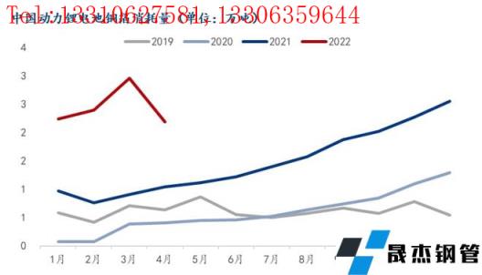 2022年前4個(gè)月中國動(dòng)力鋰電池產(chǎn)量為13GWh,同比增速超過180%,其中3月再度創(chuàng)歷史新高,動(dòng)力電池類鋰電銅箔需求量接近10萬噸。