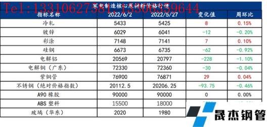 截止2022年6月2日,各原材料當(dāng)日即時價格以及價格周環(huán)比情況如下: