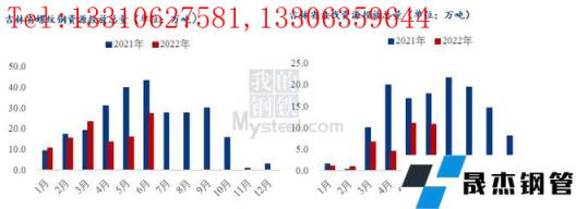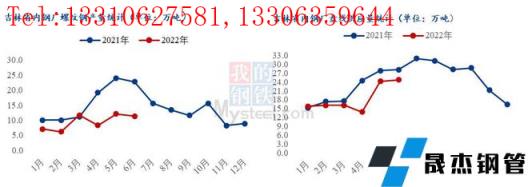 螺紋鋼方面,6月省內(nèi)及省外無(wú)縫厚壁鋼管廠家對(duì)吉林省合計(jì)投放量預(yù)計(jì)27.3萬(wàn)噸,月環(huán)比增加11.5萬(wàn)噸,月環(huán)比上升72.4%,年同比減少15.7萬(wàn)噸,年同比下降36.6%。盤線方面,6月省內(nèi)及省外無(wú)縫厚壁鋼管廠家對(duì)吉林省合計(jì)投放量10.8萬(wàn)噸,月環(huán)比減少0.3萬(wàn)噸,月環(huán)比下降39.4%,年同比減少7萬(wàn)噸,年同比下降39.4%。
