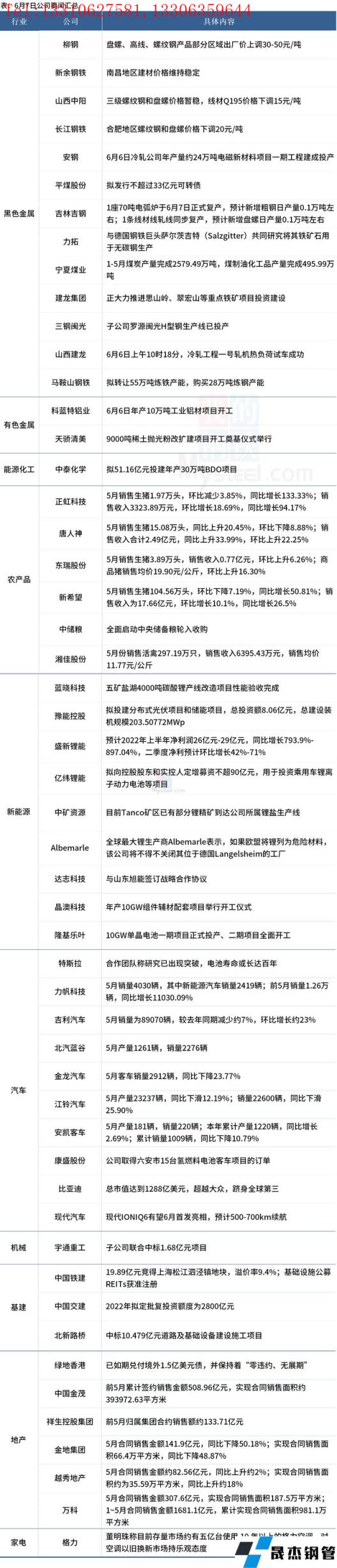 6月8日,匯總部分大宗商品相關企業要聞。