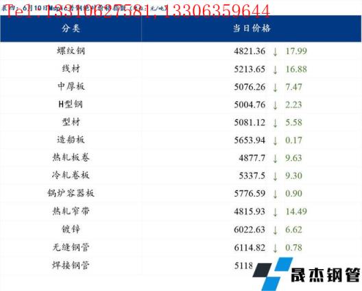 6月10日普鋼絕對價格指數變化:綜合指數5058.29,下跌12.4;螺紋鋼指數4821.36,下跌17.99;線材指數5213.65,下跌16.88;熱軋板卷指數4877.7,下跌9.63;冷軋板卷指數5337.5,下跌9.3;中厚板指數5076.26,下跌7.47。