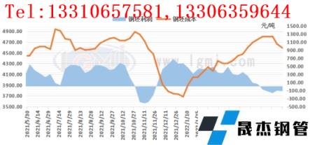 圖5 唐山長流程無縫無縫鋼管廠家鋼坯(累計(jì))成本—利潤示意圖