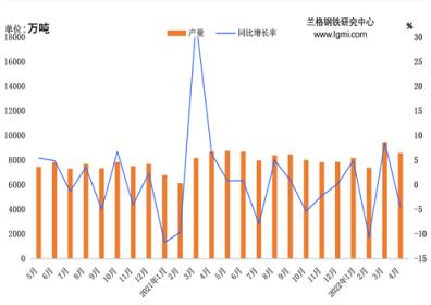 據(jù)國(guó)家統(tǒng)計(jì)局?jǐn)?shù)據(jù),2022年1-4月份全國(guó)鐵礦石原礦總產(chǎn)量為33079.4萬噸,同比下降0.9%,4月份受到疫情影響,導(dǎo)致國(guó)產(chǎn)原礦鐵礦石產(chǎn)量出現(xiàn)大幅下滑。