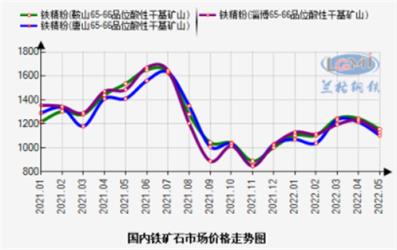 2021-2022年國(guó)內(nèi)鐵礦石市場(chǎng)價(jià)格走勢(shì)圖