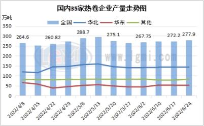七月份熱卷市場(chǎng)重點(diǎn)關(guān)注無(wú)縫鋼管廠(chǎng)家減產(chǎn)落地以及需求端恢復(fù)情況。國(guó)內(nèi)政策面對(duì)于熱卷市場(chǎng)到來(lái)一定支撐,但進(jìn)入七月份受高溫以及梅雨天氣等影響,或?qū)⒃谝欢ǔ潭壬现萍s下游需求恢復(fù)力度。