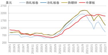 圖5 2019-2022年亞洲扁平材市場價格走勢圖