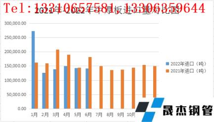 圖6 中厚板產品2021-2022年度進口量對比圖