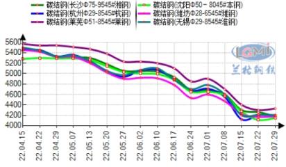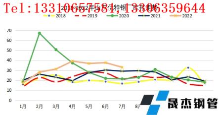 導(dǎo)語:7月份國內(nèi)優(yōu)特鋼市場價(jià)格大幅下跌。進(jìn)入7月份后,隨著北方高溫天氣和南方雨季的到來,鋼市正式進(jìn)入了需求淡季,疊加疫情反復(fù)影響,導(dǎo)致整體需求不佳。月內(nèi)宏觀消息面喜憂參半,擾動(dòng)市場行情。近期外圍加息消息不斷,歐洲央行11年來首次加息(加息50個(gè)基點(diǎn)),9月份可能繼續(xù)加息;美聯(lián)儲(chǔ)再次加息75個(gè)基點(diǎn),整體經(jīng)濟(jì)氛圍仍偏悲觀,在一定程度上阻礙了價(jià)格的持續(xù)上行。