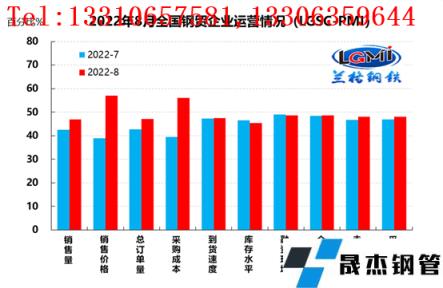云商平臺統(tǒng)計發(fā)布的2022年8月份厚壁無縫鋼管流通業(yè)PMI總指數(shù)為48.6%,比上月上升1.9個百分點(diǎn),在收縮區(qū)間內(nèi)持續(xù)回升。從分類指數(shù)看,構(gòu)成厚壁無縫鋼管流通業(yè)